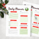 Bleibe organisiert, aber auf festliche Weise dieses Jahr mit unserem bezaubernden Tagesplaner. Das Planerblatt enthält Abschnitte für Ihre täglichen Aufgaben, Reflexionen, Mahlzeiten, zusätzliche Notizen und Aufgaben sowie Wasseraufnahme. Rot und Grün mit einer niedlichen Hase und Kranz-Abbildung machen es so fröhlich anzusehen.