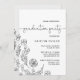 Diese Dainty-Eleganz-Abschlussfeier Einladungskarte ist perfekt für ein minimalistisches Party. Das Blumendesign besticht durch eine schlichte und elegante Anordnung feinster Schwarz-Weiß-Wildblumen, gepaart mit einem romantischen Kalligraphie-Schriftart. Personalisieren Sie den Rücken mit einem Foto und Abschluss Jahr.