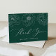 Elegante Blumenkarte mit einem obersten Rand weißer Blume mit dunkelgrünem Hintergrund. "Vielen Dank" wird in einem weißen, modernen Skript angezeigt, in dem Ihr Name unten angezeigt wird. Die Innenseite der Karte zeigt Ihre Nachricht in schwarzer Schrift an. Die Blumenkarte eignet sich hervorragend für Hochzeiten, Brautpartys, Babyduschen, Geburtstage und vieles mehr!