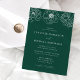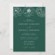 Elegante blumengeschmückte Hochzeitsfeiern mit einer obersten Grenze von weißgetünchten Blume mit grünem Hintergrund. Personalisieren Sie die grünen Blumeneinladungen mit Ihren Namen und Hochzeitsdetails in weißer Schrift mit Akzenten der Kalligraphie. Entworfen, um mit unserer Hochzeitskollektion Dainty Floral zu koordinieren.
