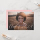 Elegante Graduiertenparty mit dem horizontalen Foto des Absolventen mit "Class of 2023" in einem weißen, handgeschriebenen Drehbuch. Personalisieren Sie die Front der Foto Graduation Party Einladung mit dem Namen und Schule des Absolventen. Die Einladung kehrt zurück, um Ihre Abschlussfeierdetails mit einem rot-rosa Hintergrund oder Farbe Ihrer Wahl anzuzeigen.