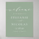 Herzlich willkommen bei Ihren Hochzeitsgästen mit diesem romantischen Begrüßungszeichen. Dieses individuell gestaltbare Begrüßungsschild mit einem Malskript mit klassischer Typografie auf einem schlängelgrünen Hintergrund.