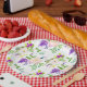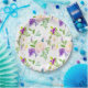 Farbige und feminine Teller mit Aquarellblütenpädagogik und lila Wisterias. Dies ist perfekt für jede Frühjahr- und Outdoorveranstaltung.