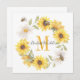 Ein elegantes, gelbes Goldmonogramm mit Skripttypografie, umgeben von einem hübschen gelben Sonnenblumenkranz, mit hübschen Zusätzen wie Gänseblüten und Bienen. Bestellen Sie größere Mengen für mehr Einsparungen.