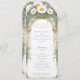 Dieses wunderschön gestaltete Hochzeitsfeierprogramm besticht durch ein atemberaubendes Jugendstil-inspiriertes Design mit eleganten, weißen Gängen, die durch die aufwändigen goldenen Akzente und das üppige Grün gerahmt sind. An der Vorderseite des Programms werden die Gäste herzlich mit den Details der Hochzeitsfeier begrüßt, während die Rückseite die Mitglieder der Hochzeitsfeier ehrt. Die zarten Gänge, das Set vor einem zarten, beigen Hintergrund, verleihen dem Gast ein Gefühl von natürlicher Schönheit und zeitloser Eleganz, perfekt für Paare, die ein klassisches und elegantes Hochzeitsthema wünschen. Die Kombination aus Weiß, reichen Grüntönen und subtilen Golden macht dieses Programm zu einem angenehmen Sake für Ihre Gäste, der das Wesen Ihres besonderen Tages einfängt.