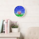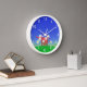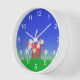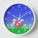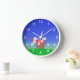 Wanduhr mit originellem Design einer roten Dose und hellen Gängen mit blauem Himmel und grünem Gras.