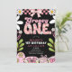 Daisy 1st Birthday Pink and Black Retro Birthday Einladung