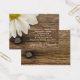 Üben Sie etwas Hochzeitsfreundlichkeit, wenn Sie Ihren großen Tag zurückgeben und eine Hochzeitskarte für die Wohltätigkeit am Heiratsplatz Ihrer Empfänge ablegen. Die bezaubernde White Daisy und Barn Wood Country Hochzeit Wohltätigkeit Gunst Card Staaten, die anstelle eines traditionellen Gastgeschenks, eine Spende in ihrem Namen für die Wohltätigkeit gemacht wurde. Passen Sie es mit dem Namen der bevorzugten Wohltätigkeit und den Namen der Braut und des Bräutigams an. Diese rustikale, schicke Wohltätigkeit im Stil eines personalisierten Westerns mit einer Ranch-Hochzeitskarte ist mit einem nahen Blumenfoto von einer weißen Blüte aus einer zarten Blume und einem braunen, verwitterten Scheunenholz mit einem rostigen Nagelkopf versehen.