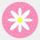 Eine süße Daisy auf einem rosa und weißen Polka gepunkteten Hintergrund.
