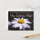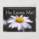 Daisy mit süßem Sprichwort, Er Lieben mich, Er Lieben mich nicht, Er Lieben mich! auf Postkarte und Ihr eigener Gruß kann auf der Rückseite platziert werden. Kann für Verlobung, Hochzeit oder nur weil.