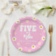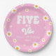 Dies ist ein rosa Retro Daisy Blume Five ist ein Vibe 5. Geburtstagsparty Papier Teller.