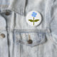 Dieser niedliche Knopf zeigt ein digitales Bild einer Daisy mit einem grünen Stiel mit zwei grünen Blätter und hellen und dunkelblauen Blütenblättern. Das ist ein einfaches, aber schönes Design. Der Hintergrund ist weiß.