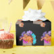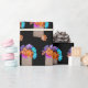 Farbenfroher Strauß in einem braunen Papiersack auf schwarz.