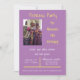 Bild von Geburtstagsmädel und Prinzessin auf lila Hintergrund auf der Vorderseite mit Party-Details und Bildern von Gänsehönen auf der Rückseite.