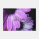 Diese individuelle Türmatte ist mit einem nah-up-Bild von einem Paar regengetränkter Gerbera Daisy Blüten in koordinierten Schattierungen von lila. "Willkommen" wird in großen, leicht lesbaren Schriften hinzugefügt. Die Matte misst 24" x 36" und hat eine glatte Filzfront und einen rutschfesten Latex hinten. Es hat auch eine verstärkte Kante, um dem Ausgraben zu widerstehen, ist sowohl verblassen & mildew resistent, und reinigt leicht mit einem Spray von Wasser. Ideal für überdachte Einstiegsanlagen wie z.B. Veranda, Appartements, Büroräume, Wohnungen, usw. Wenn Sie Fragen zu dieser Matte haben oder mir helfen möchten, dieses Design auf einen anderen Artikel zu übertragen, können Sie mich über Zazzle kontaktieren. Ich helfe Ihnen gerne dabei, das Bild und die Schrift richtig einzustellen.