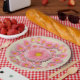 Rosa dunkle Blume Foto Papier Teller. Fügen Sie Ihren benutzerdefinierten Text und Ihre Hintergrundfarbe hinzu.