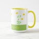 Designergelbe Kaffeemaschine, mit Grüntönen besticht, mit einem frischen, weiß getönten Aufdruck. Der Text kann auf Ihre eigene inspirierende Nachricht personalisiert werden, oder der Text ist abnehmbar. Schöne personalisierte Geschenkidee.