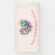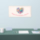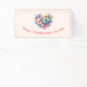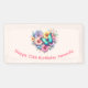 Birthday banner with a beautiful illustration. A heart-shaped bouquet of flowers in pastel blue, green, purple and yellow. With a lovely blue butterfly hovering in front.