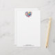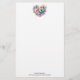 Stationery paper with a beautiful illustration. A heart-shaped bouquet of flowers in pastel blue, green, purple and yellow. With a lovely blue butterfly hovering in front.