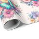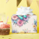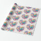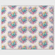 Wrapping paper with a beautiful illustration. A heart-shaped bouquet of flowers in pastel blue, green, purple and yellow. With a lovely blue butterfly hovering in front.