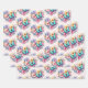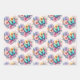 Wrapping paper sheets with a beautiful illustration. A heart-shaped bouquet of flowers in pastel blue, green, purple and yellow. With a lovely blue butterfly hovering in front.