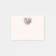 Sticky notes with a beautiful illustration. A heart-shaped bouquet of flowers in pastel blue, green, purple and yellow. With a lovely blue butterfly hovering in front.
