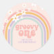 Daisy Groovy One Pastel Regenbogen zum ersten Gebu Runder Aufkleber