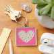 Daisy Herz Keychain. Die Hintergrundfarbe kann angepasst werden.