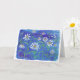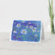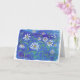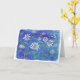 Eine leere, einmalige Grußkarte mit einem originalen Aquarellbild von Gänseblauen auf leuchtend blauem Hintergrund.