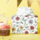 A daisy pattern in doodle pen and ink style with autumn colors of butter yellow, crimson, and purple decorates this gift wrap. Design is AI-generated by IveyCottage.