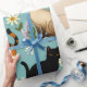 This cheerful seamless pattern features a delightful mix of cats—calico, Siamese, black, and orange tabby—playfully scattered among white daisies and green leaves on a soft blue background. With cats in various poses and expressive personalities, this design radiates warmth, charm, and whimsy. Perfect for cat lovers, floral fans, and anyone who adores cozy, nature-inspired art.