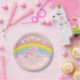 Die Teller aus niedliche Geburtstag sind handgezeichnete Poren und ein Regenbogen in Pastellfarben.