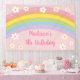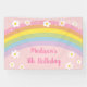 Dieses bezaubernde Geburtstagsbanner zeigt handgezeichnete Gänse und einen Regenbogen in Pastellfarben.