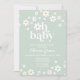 Retro inspirierte Baby-Dusche-Einladung mit 70er Jahren Stil-Gängen und boho Schriftart und Farben.