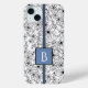 Daisy Schwarz-weiß Floral Muster Blue Monogram Case-Mate iPhone Hülle