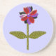 Dieser hübsche Sandstein-Untersetzer zeichnet sich durch ein digitales Bild einer Latte mit einem grünen Stiel mit zwei grünen Blätter und lila, rot-schwarzen Blüten mit einem lila Zentrum aus. Die Blätter sehen aus, als wären sie aus glänzendem Kunststoff, der das Licht gefangen hat und einen unglaublichen Effekt verursacht hat. Der Hintergrund ist eine beruhigende blaue Farbe.