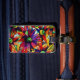 mit originellem Kunstdesign aus Aquarellmalerei von Sacha Grossel aus regenbogenfarbenen, matten Stroh-Blume. Dieses abstrakte, leuchtend blumengeschmückte Design der mehrfarbigen Blütenblätter Rot, Orange, Blau und Gelb wird durch botanische Kunst inspiriert.