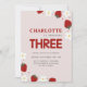 Daisy Strawberry Light Gray 3. Sommer Geburtstag Einladung