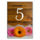 Helfen Sie Ihren Gästen mit diesen charmanten Daisy Trio Country Wedding Tischnummern, ihre Sitzplätze zu finden und erstellen Sie für jeden Tisch eine andere Karte für Ihr Brautparty auf dem Bauernhof oder Ranch, Hochzeitsempfang oder Verlobung Stall Party. Diese lässigen und dennoch eleganten Karten der botanischen Tischnummer sind mit einem malerischen Blumenfoto von zwei rosa Gänseblüten und einer orangefarbenen Blüte der Blume und einem weißen Brautschleier mit braunem, verwittertem Stallholzhintergrund versehen.