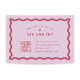 Diese Hochzeitskarten zeichnen sich durch eine fette Viva Magenta-Farbe aus, die mit einer leichten Lilie lila ist und eine lebendige und spielerische Ästhetik schafft. Die Retro-Wave-Grenze fügt eine Touch Nostalgie hinzu und fügt dem Design ein lustiges und einzigartiges Element hinzu. Die Karten sind in verschiedenen Farbvarianten erhältlich und bieten Ihnen die Flexibilität, einen zusammenhängenden Look für Ihren besonderen Tag zu schaffen. Die zusätzliche Schreibwaren in dieser Sammlung ist so konzipiert, dass sie gemischt werden, sodass Sie ein maßgeschneidertes und koordiniertes Aussehen für Ihre Hochzeit erstellen können.