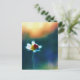 Ein spielerischer roter Ladybug auf einer zarten, gelb zentrierten, weißen, dunklen Blume. Der künstlerische Stil verleiht diesem Blumenbild ein skurriles Gefühl.