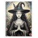 Dieses Notizbuch enthält eine ruhige Hexe in einem Feld von Götzen, die sich einen Augenblick lang einen Augenblick des Betens und Dankbarkeit für ihre Segnungen nehmen.