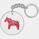 Dieses Design des Dala Horse Schlüsselanhängers stammt von einem Holzpferd, das von Julia Morrill geschnitzt wurde.