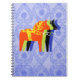 Blaues Notizbuch mit gezeichnetem Papier u. ein Dala Pferdemotiv groß für Studien, Anmerkungen, Sitzungen, Träume, Adressen und Anmerkungen.