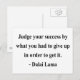 "Beurteilen Sie Ihren Erfolg danach, was Sie aufgeben mussten, um ihn zu bekommen." - Dalai Lama