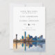 Diese elegante Dallas-Skyline-Wasserfarben-Hochzeit Save-the-Date-Karte kann mit Ihren Informationen in moderner Typografie personalisiert werden. Entworfen von Thisisnotme