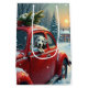 A nostalgic winter painting of a Dalmatian peeking out from a red car during a snowy Christmas drive. A classic holiday artwork that evokes warmth, adventure, and joyful anticipation.