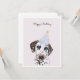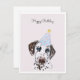 Für alle Dalmatiner-Hunde-Liebhaber da draußen, hier ist eine Karte für Sie. Ein glücklicher Geburtstag von deinem Dalmatiner. Ein Aquarell-Dalmatiner, der ein Party trägt, das sich in der Mitte dieser Geburtstagskarte befindet.