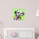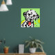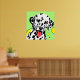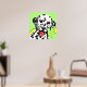 Bunte Hundekunst, die weißen Dalmatiner mit schwarzen Stellen gegen einen hellgrünen Hintergrund mit gelben Kreisen kennzeichnet
