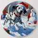 Dalmatiner läuft im Schnee mit Weihnachtshut Button